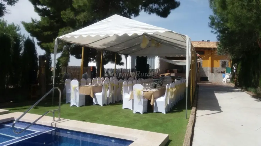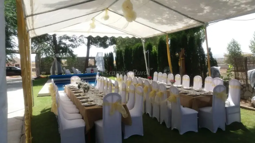 La finca para bodas «Santa Cruz» ubicada a 60 km de la capital, es una opción ideal para celebrar tu boda. Esta finca cuenta con amplios espacios al aire libre junto a amplios espacios interiores. La finca es una posibilidad económica en la que poder disfrutar al máximo de un día tan especial. Trabajamos junto a los directores de la finca para proporcionar el mejor servicio posible a nuestros clientes. Con posibilidad de servicio de catering y barra libre.